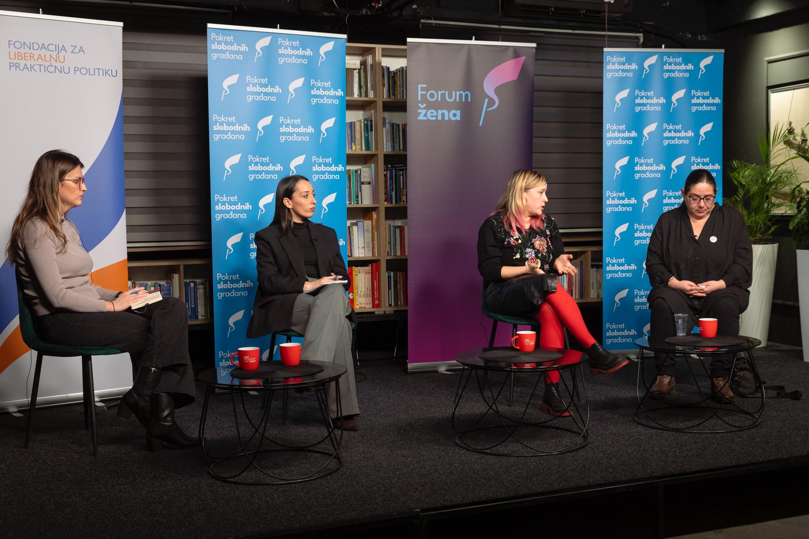 Na panelu su govorile Jelena Banjac, predsednica Mladih PSG i gradska odbornica, Kosana Beker, programska direktorka FemPlatz-a i Natalija Simović, koordinatorka AŽF i gradska odbornica.